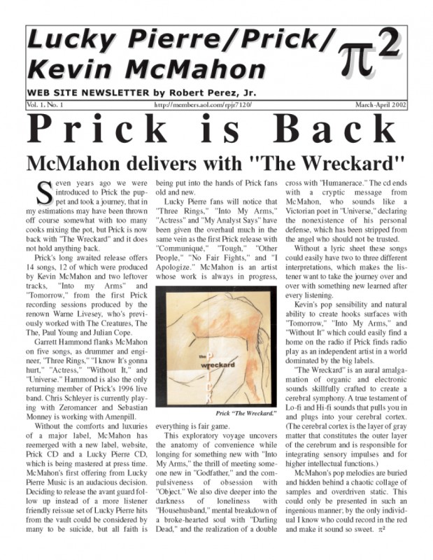 Pi Squared was a monthly newsletter put together by Robert Perez Jr. in 2002 & was featured on his infamous Kevin McMahon fansite.
