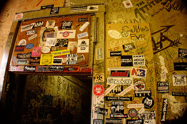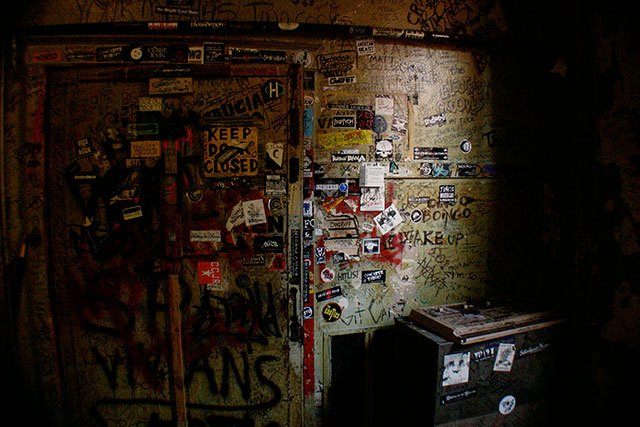The red leather studded door swings open and you're immediately overwhelmed by 30 years of graffiti? sharpie testaments of the artists who've wowed audiences from the Phantasy stage. We got a small glimpse of this before from the Broken Man photos sent to us by Paul Kompier,