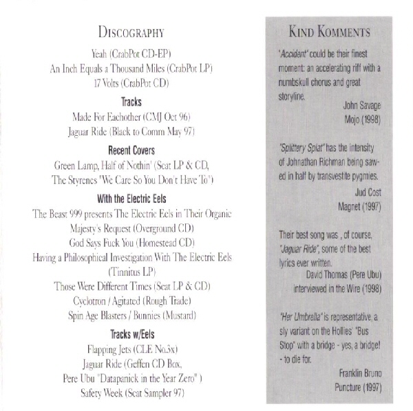 Label: Crabpot Records Catalog #: CRPT 103 Format: CD Country: US Year: 1999 Genre: Rock Style: Alternative Rock