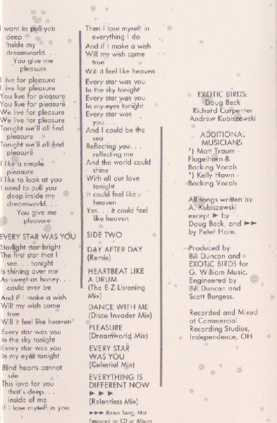 Artwork By [Booklet Design & Production] - Erin Hill Artwork By [Cover Paintings] - Scott Miller Engineer - Scott Burgess Digital Editing & Transfer - Paul Hamann , Rosalind Ilett Performer - Andrew Kubiszewski, Doug Beck, Richard Carpenter Photography - Jim Hynds Producer - Exotic Birds Producer, Engineer - Bill Duncan Backing Vocals - Kelly Hawn (tracks: 2) Backing Vocals, Flugelhorn - Matt Traum (tracks: 2)