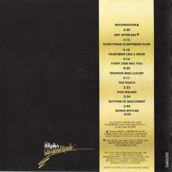 Label: Alpha International Records Catalog #: D270955 Format: CD Country: US Year: 1990 Genre: Electronic Style: Synth-pop