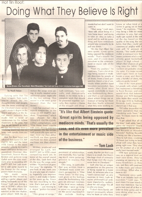 Talking with Hot Tin Roof kingpin Tom Lash, you’re struck by his thoughtfulness and insights into the inner workings of the Cleveland music scene. Lash’s master’s degree in the how’s and why’s of the local music industry has made him a kind of spokesman for his fellow musicians in the area. Not that he set himself as such. It’s just that having been a working musician for so long, Lash speaks from experience.