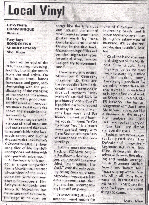 Communique is a triumphant vinyl return for one of Cleveland's most interesting bands, and if Kevin McMahon ever loses his slightly askew view of mankind, it'll be the record-buying public's loss, too.
