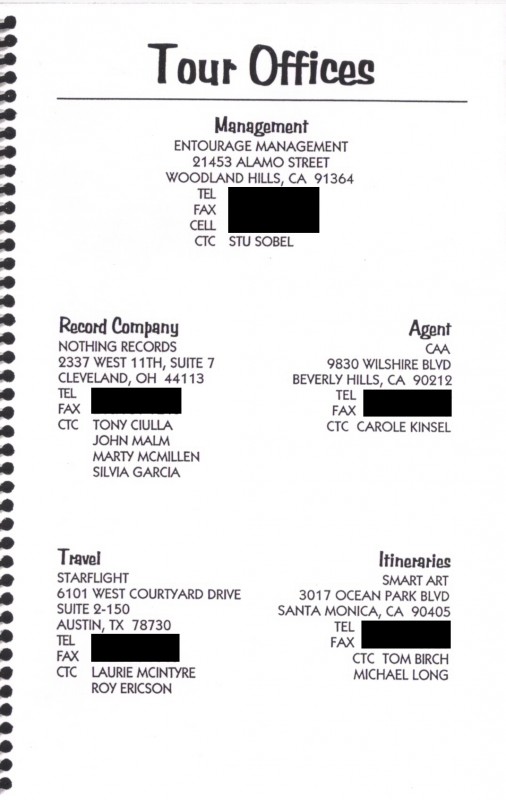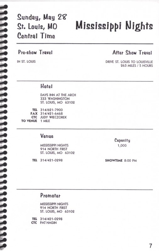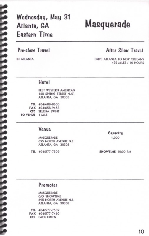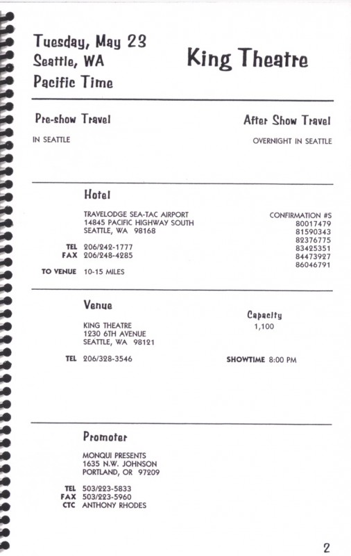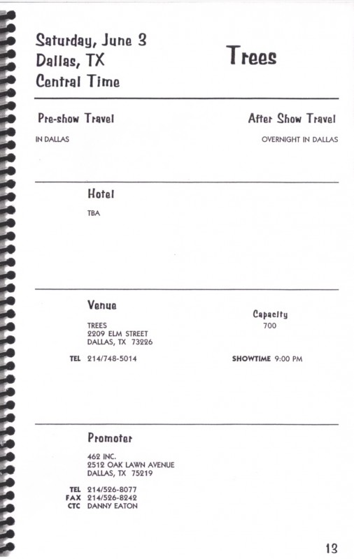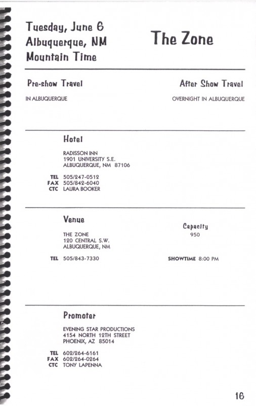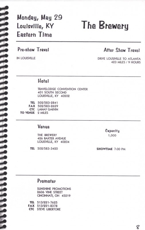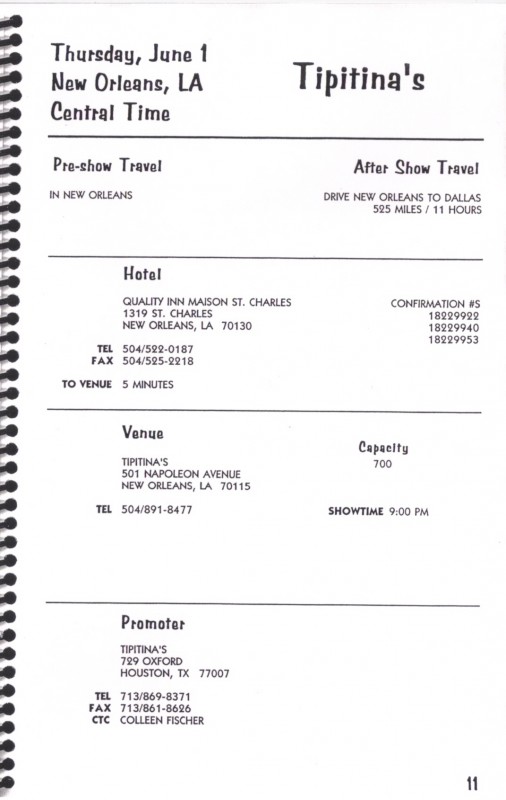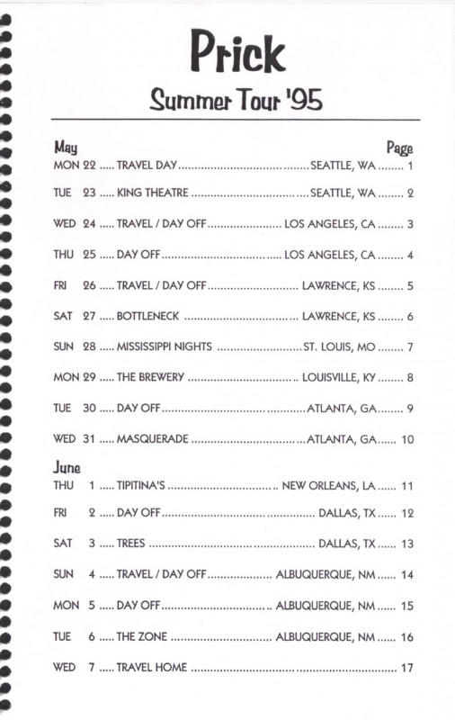 1995 Tour Itinerary (1995)