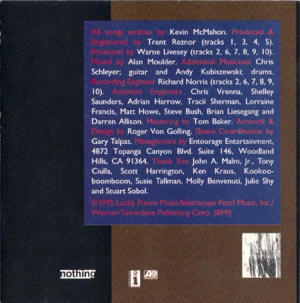 Label: Nothing Records Catalog #: 92395-2 Format: CD (Promo) Country: US Year: 1995 Genre: Rock Style: Industrial, Alternative