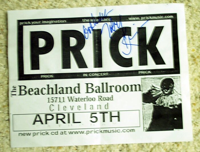 Ether Net Came out and did there set which must have been cut short. They were pretty decent for an opening band. Good pure rock music. I have a feeling they are more of a studio band and less of a live band at this point. Their cd might actually be pretty good. They played about 4 or 5 songs I believe. They started doing the switch for prick and I laid down and admired the beachland it was actually a really nice venue.