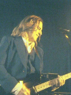 Artists and glitterati were in effect at the Peppermen show back at the Symposium, set up when Marilyn Manson canceled his entire tour (McMahon was scheduled to open the Cleveland stop on that tour). Some folks had driven up to 3 hours from as far away as Detroit, and the talk before the gig was about how much some of the early Lucky Pierre singles were selling for on eBay. The built-up demand was certainly evident, and the crowd was simply mesmerized from the opening chords of new song, Johnny Goes to Paris, through stand-out Hire A Lover, and right up to the end of the (too short) 14-song set. Highlights included a smoking guitar lead by Rick Christyson on the classic Lucky Pierre song Fans and Cameras, and the intense She Wasn't Good (She Was Great), with drummer Dave Zima's great-sounding bass drum.